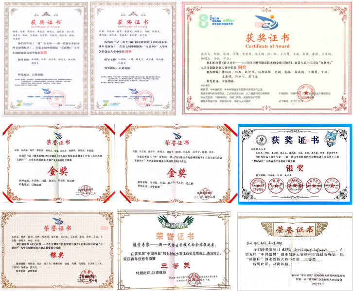 科研项目成果需要团队成员相互支持、相互学习,共同攻克科研难题。通过交流和合作,倾听并吸纳他人的意见能少走弯路。在准备“互联网+”大学生创新创业大赛期间,昝君作为项目负责人日以继夜的准备材料,项目PPT修改了近百次,但是在决赛前一个星期PPT思路仍不完善。“随后,我请教了导师并吸纳了团队成员意见,在团队紧密合作下,最终完善了答辩PPT并获国家银奖,创下了当时学校最好成绩。”此外,昝君还先后参加各类科技创新大赛,获奖10余项。