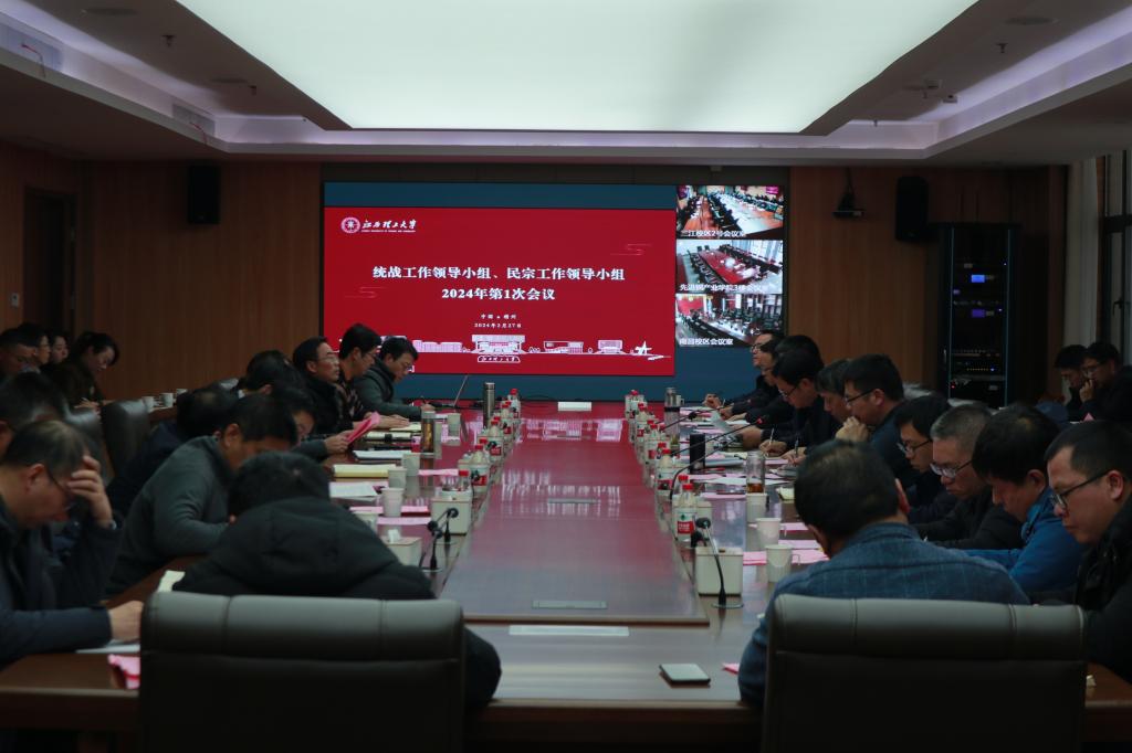 在三江校区濂溪楼2号会议室召开学校统一战线工作领导小组、民族宗教工作领导小组2024年第一次会议。校党委副书记罗仙平、各相关职能部门主要负责人、各二级党组织书记参加会议。罗仙平主持会议。