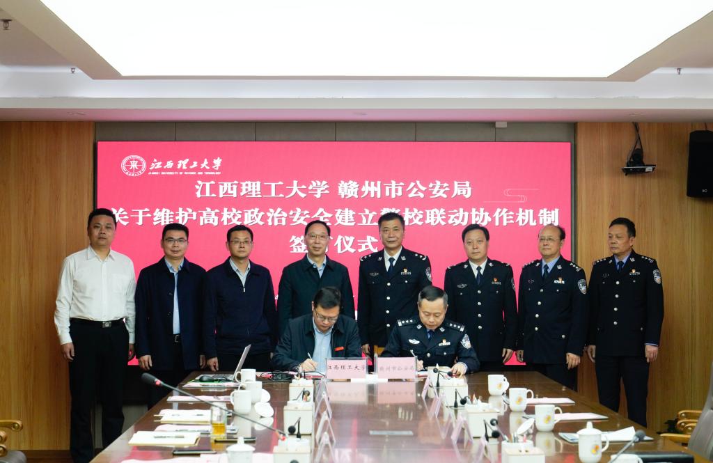 与赣州市公安局在三江校区濂溪楼2号会议室举行交流座谈会,就关于维护高校政治安全建立警校联动协作机制签订警校合作协议。赣州市政府副市长、市公安局党委书记、局长叶新,市公安局党委副书记、常务副局长严全民,市公安局开发区分局党委书记、局长黄晓明,校党委书记杨斌,校党委常委、副校长熊志华出席座谈会。赣州市公安局及裸聊直播