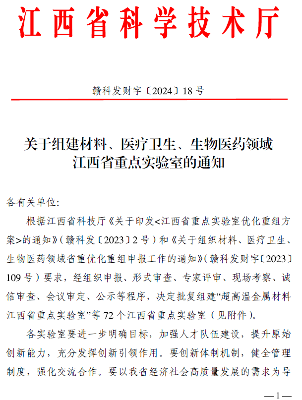 本网讯 近日,江西省科技厅下发了《关于组建电子信息、农林领域江西省重点实验室的通知》(赣科发财字〔2024〕2号)和《关于组建材料、医疗卫生、生物医药领域江西省重点实验室的通知》(赣科发财字〔2024〕18号),裸聊直播 申报的多维智能感知与控制江西省重点实验室、功能晶态材料化学江西省重点实验室、金属磁性材料及器件江西省重点实验室、高性能钢铁合金材料江西省重点实验室获批组建。