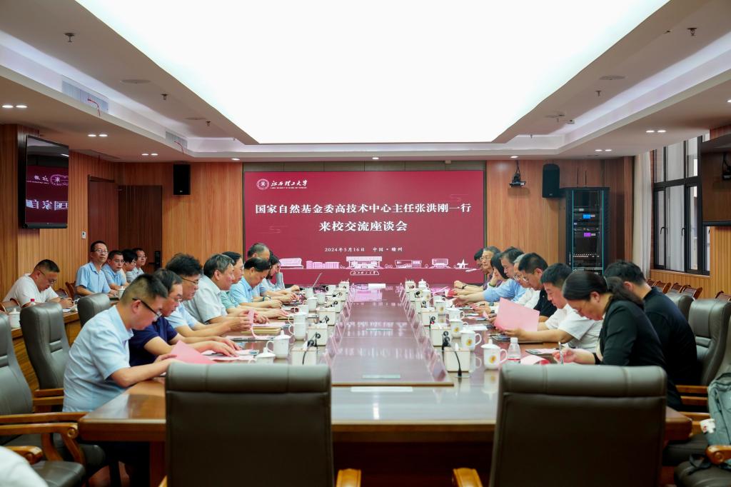 本网讯 5月16日下午,国家自然基金委高技术中心主任张洪刚一行来校调研科技发展工作。省科技厅党组成员、副厅长陈金桥及市科技局、赣县区政府办一行陪同调研,并在三江校区濂溪楼2号会议室召开座谈会。校党委书记杨斌,校党委副书记罗仙平,校党委常委、副校长唐云志出席会议,裸聊直播