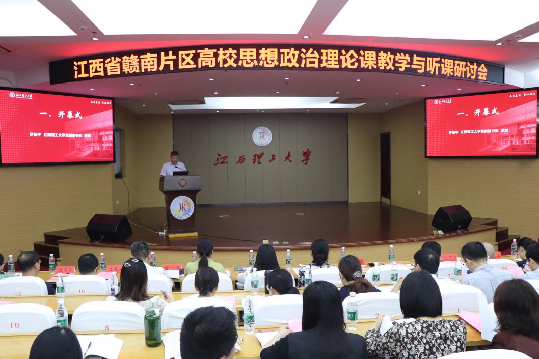 马克思主义学院、江西省高校思想政治理论课邓显超名师工作室牵头在红旗校区赵氟隆图书馆学术报告厅举办了江西省赣南片区高校思想政治理论课教学与听课研讨会。