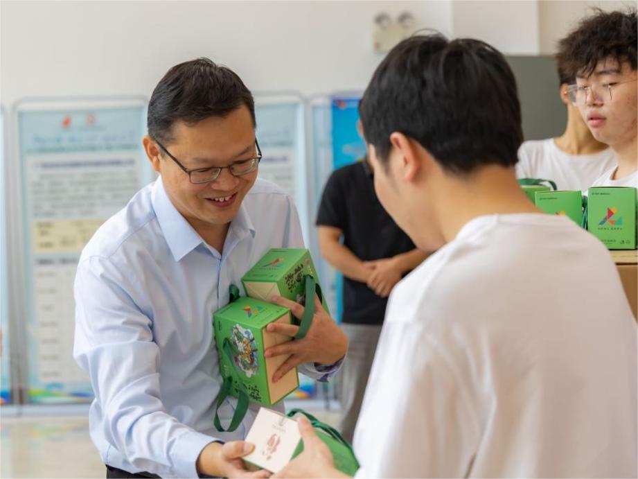 校党委常委、副校长熊志华来到三江校区粽子礼盒发放现场,传达了学校对同学们的殷殷祝福与期盼。他表示,学校每年举办端午节特色活动是弘扬中华民族文化、增强文化认同的有效途径,让师生感受到传统节日与传统文化的魅力,增强文化自信和民族自豪感。借此契机,他希望同学们赓续中华文脉,勇担时代重任;涵养家国情怀,擦亮青春底色;追随先贤足迹,绘就多彩人生。