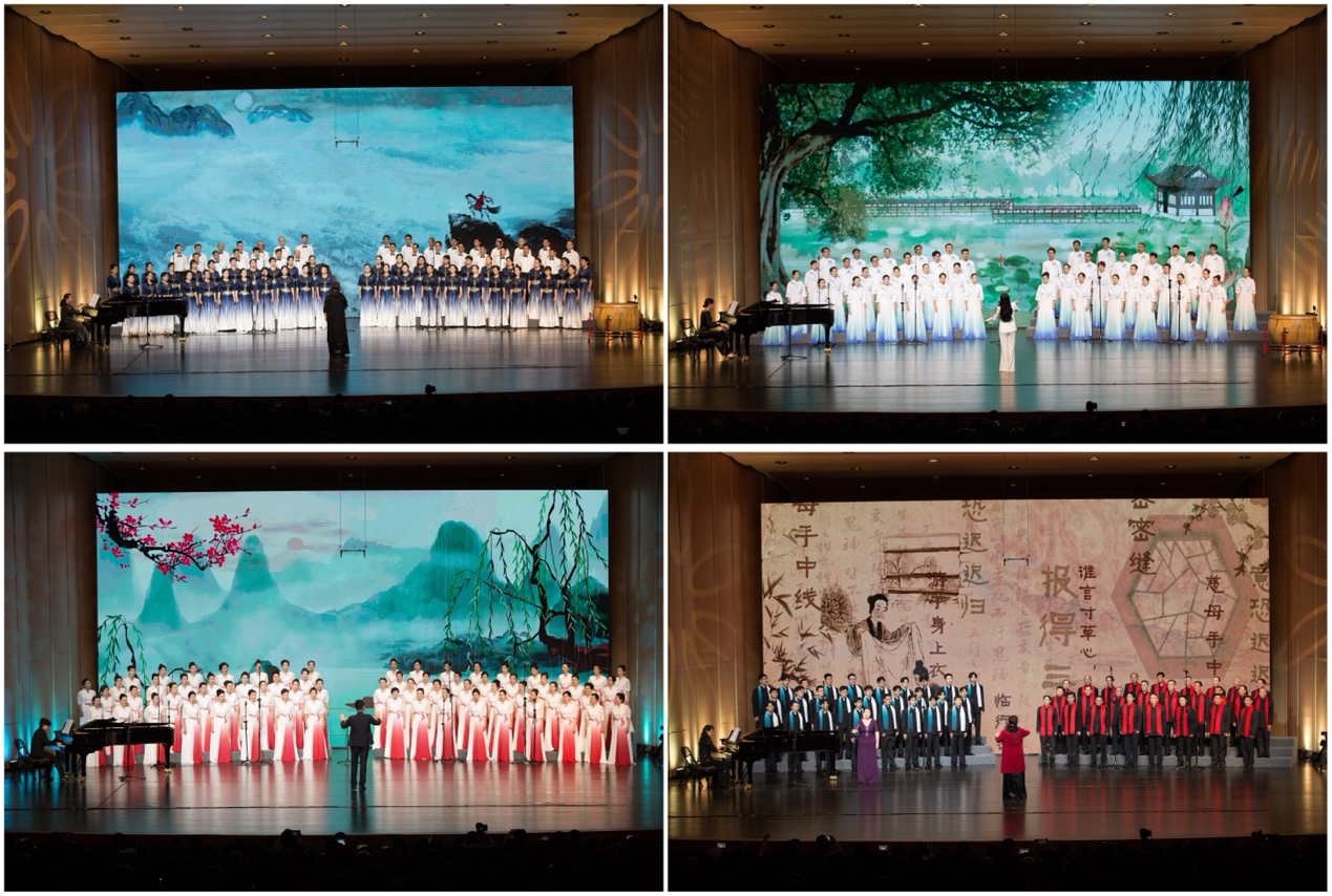 八角之声合唱团首席指挥杨智昕老师介绍音乐会独特的舞台呈现时表示:“为了更好呈现中国古诗词的唯美、情愫、感怀,音乐会的舞美设计、服装造型、背景视频打破了不使用灯光和视频的‘惯例’,融入了满满的中国传统文化元素。”