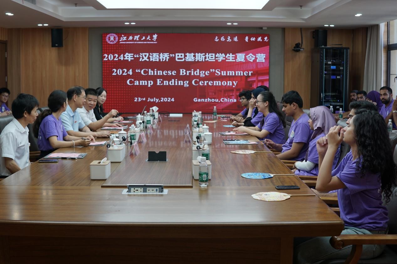 本网讯 7月23日上午,2024年“汉语桥”巴基斯坦学生夏令营结营仪式在濂溪楼2号会议室举行。巴基斯坦旁遮普大学、拉合尔工程管理大学、阿拉马伊克巴勒开放大学和拉合尔爱奇森学院共20名巴基斯坦师生参加此次结营仪式。校党委常委、副校长廖春发,孔子学院中方院长兼国际交流与合作中心(国际教育学院、港澳台事务中心)主任(院长)蔡进宝、体育与艺术学院副院长黄丽娜及相关教师出席仪式。