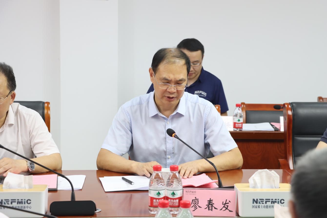 副校长、中心稀土合金材料应用技术创新平台首席科学家廖春发,江西省工信厅科技处处长李晨炜、赣州市工信局四级调研员刘毓干、赣州高新区管委会副主任邓永芳、中心董事长王伟生、副总经理叶信宇、财务总监郭小平等参加会议。