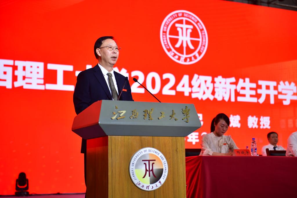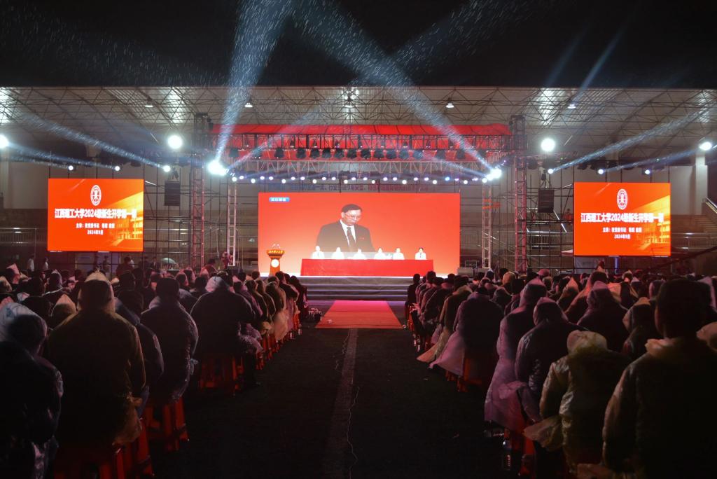 2024级新生开学典礼暨迎新晚会在赣州、南昌两地三校区首次以同步连线直播的形式隆重举行,八千余名本硕博新生启航江理,共赴新程。在家校领导杨斌、龚姚腾、廖春发、唐云志、黄志繁、董冰岩、刘飞,校党委常委盛晓明、汪锋锁,各相关部门负责人、教师代表以及全体2024级新生参加典礼。典礼由校党委常委、副校长龚姚腾主持。