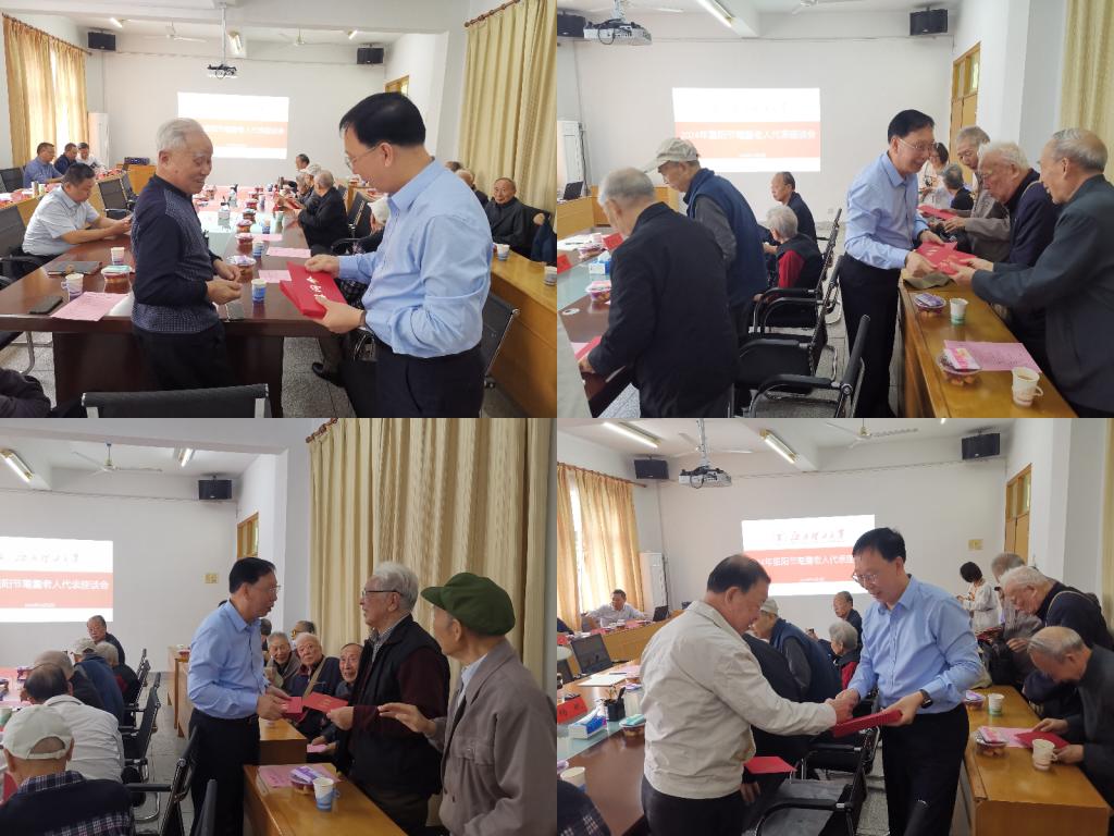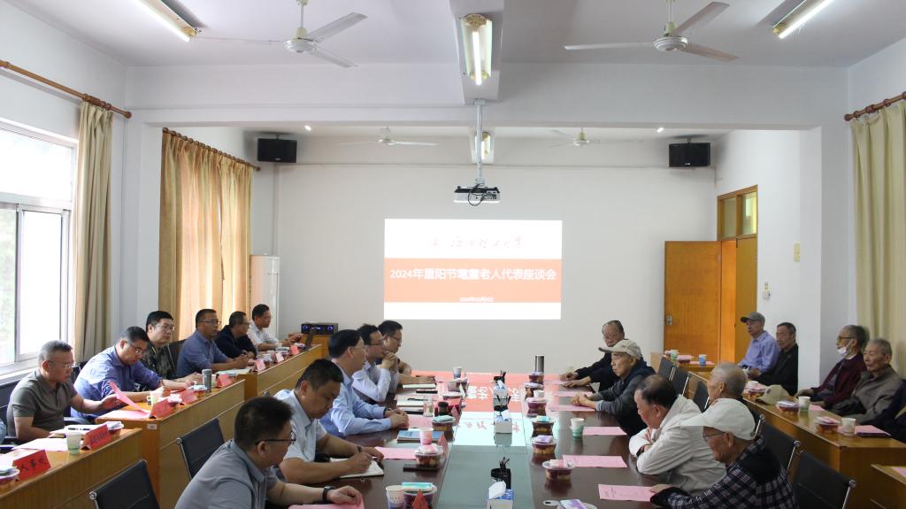 在红旗校区老年活动中心202会议室召开2024年重阳节耄耋老人代表座谈会。校党委书记杨斌,校党委常委盛晓明、汪锋锁出席座谈会,相关职能部门负责人及离退休教职工代表参加座谈会。会议由盛晓明主持。