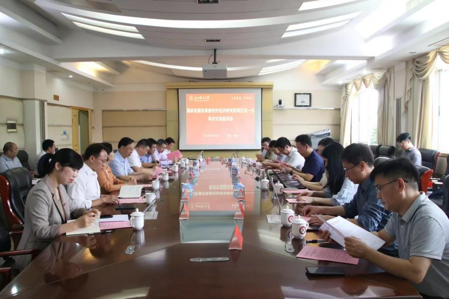 本网讯 近日,国家发展和改革委员会对外经济研究所室副主任、副研究员苑生龙,省生态文明研究院经济所研究室负责人李杰玲和市发改委一行来访,就“江西融入中巴经济走廊产业合作”在赣州的开展情况展开调研。校党委书记杨斌,国际交流与合作中心、外国语学院、经济管理学院、巴基斯坦研究中心等相关部门负责人会见来宾并举行座谈交流会。双方为进一步聚焦产业合作,搭建中巴经济文化交流桥梁,推动区域协调发展等进行深入交流。
