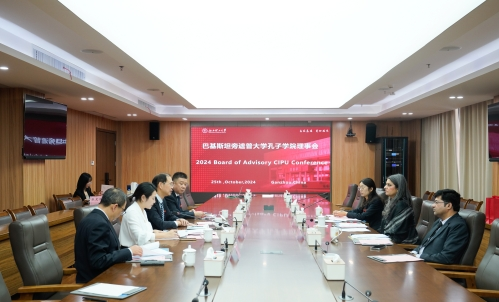 本网讯10月25日,裸聊直播 召开2024年孔子学院年度理事会,校党委常委、副校长廖春发、巴基斯坦旁遮普大学对外联络处处长Sobia Khurram、巴基斯坦旁遮普大学孔子学院外方院长Shafiq-ur-Rehman、中方院长蔡进宝、校计划财务处处长周俊峰参会。