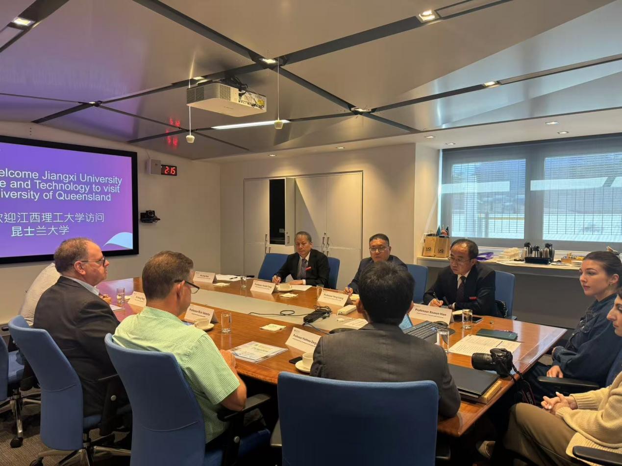 的科研项目申报和国际会议。会谈达成签署《江西理工学与昆士兰科技大学合作备忘录》的意向,为未来在更多领域开展深入合作奠定基础。