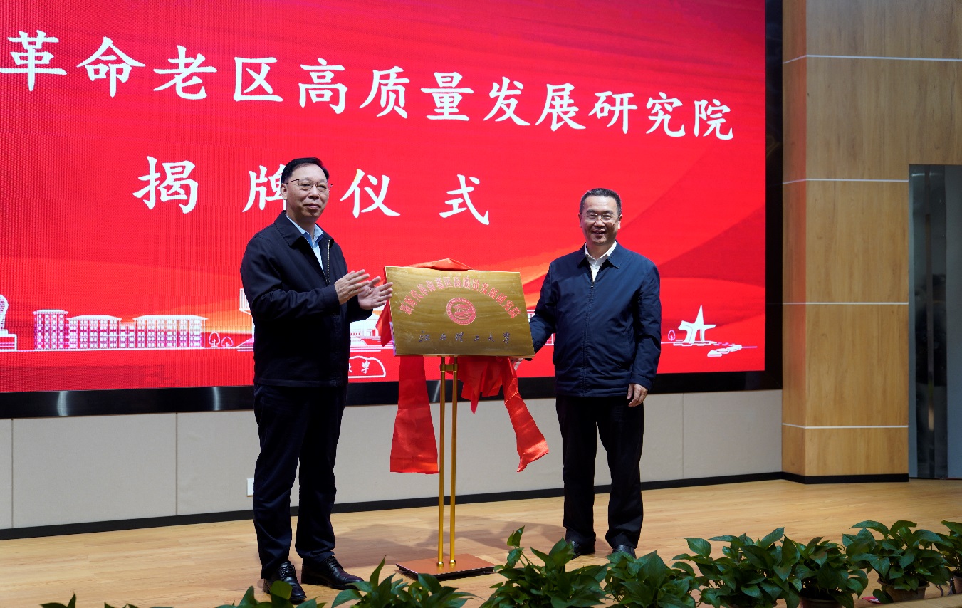 揭牌仪式上,饶振华和杨斌共同为新时代革命老区高质量发展研究院揭牌。