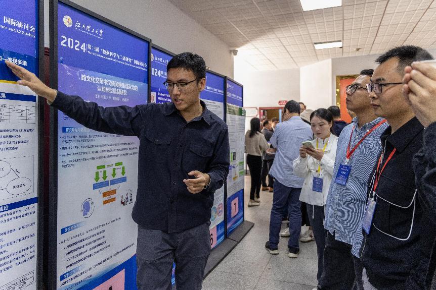 海报展示环节,大会展示了八张兼具创新与科学的二语研究设计海报,包括“Quantitative evaluation of German teaching word lists based on word frequency, concreteness and lexical AoA”“Students' Attitude and Self-Feedback Ability in Using Al-mediated Revision”“形音信息在汉语二语阅读中的作用机制:基于个体一认知一表现多维数据的建模探索”“微字幕呈现方式对中级汉语学习者学习过程与效果的影响研究”等,展现了该行业专家学者在二语习得丰富的研究成果,加强了在场学者之间交流和互动,有助于二语研究在未来向前迈进一大步。
