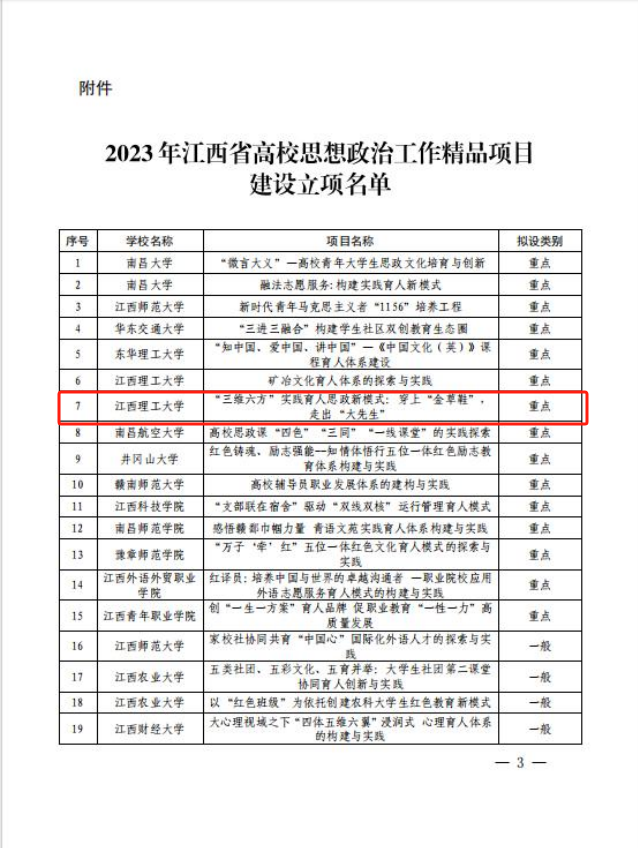 以“金草鞋”铸金身,红人红师树牢立德树人根本。紧扣立德树人根本任务,依托2023年江西省高校思想政治工作精品重点项目《“三维六方”实践育人思政新模式:穿上“金草鞋”,走出“大先生”》,创新育人形式,提升育人实效,多措并举推动高质量、内涵式实践育人教育教学新模式,构建多维度师生沟通渠道,打造多角度师生共进工程,推动红人红师走深走实,培养贡献教育强国力量的人才队伍,如全国优秀教师吴一丁、江西省五一劳动奖章获得者张海燕。