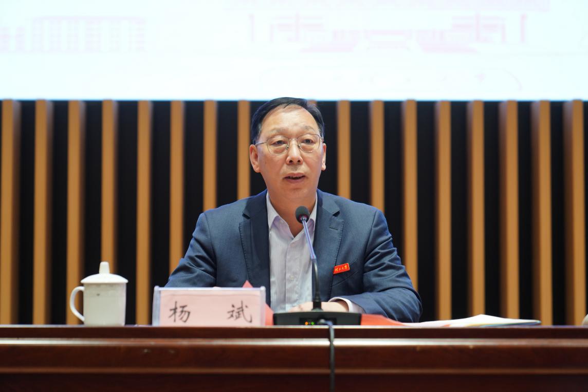 校党委书记杨斌回顾了学校科技与成果转化等各个方面的科学进步,梳理了全年工作的特色与亮点,充分肯定了学校一年来党建引领事业高质量发展取得的新成绩、新成效,同时也点出了学校基层党建工作中存在的一些短板不足。他从聚焦党建引领谋好发展大势,聚焦“关键少数”抓好队伍建设,聚焦内部治理树好和谐新风等三个方面对党建引领保障高质量发展提出了明确的要求。杨斌还提出了学校下一阶段“确立一个目标”“守牢两个底线”“实施三大战略”“突出四项改革”“落实五个保障”“推进六大行动”的总体发展思路。杨斌强调,希望各二级党委认真学习领会、抓好工作落实,凝心聚力,精准把握“干什么”“怎么干”“与谁一起干”等关键环节,在比学赶超中狠抓落实,在争先创优中奋发作为,保持定力、攻坚克难,不断扩大党建引领高质量发展乘数效应,以第一等的工作为学校事业发展保持持续上升作出更大的贡献。