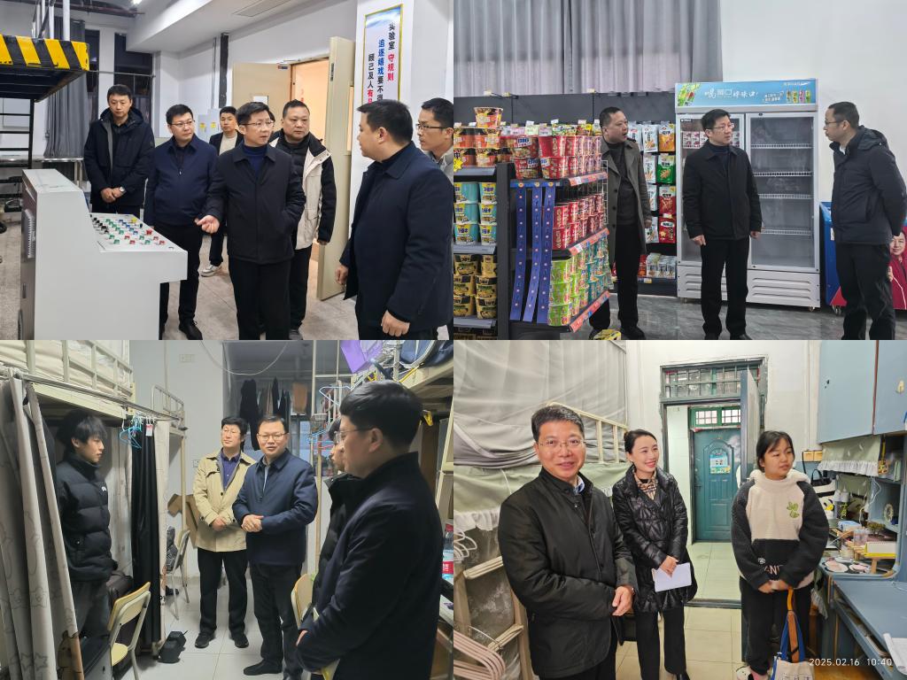 本网讯 为全面保障新学期开学工作平稳有序,2月15日-16日,校党委书记杨斌带队检查2025年春季开学前各项准备工作。校党委副书记徐志峰、校党委常委、副校长董冰岩、熊志华,校党委常委、纪委书记、监察专员刘飞及党办校办、保卫处、学工部、研工部、教务处、校服校产中心等十余个部门负责人组成检查组,深入三江校区、红旗校区、南昌校区各重点区域,全面督导开学条件保障及基建项目安全工作。