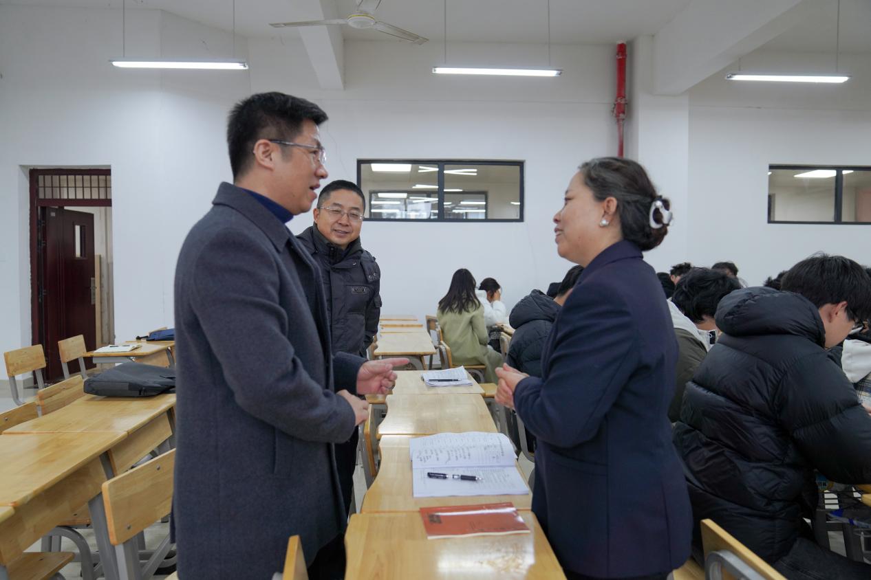 校党委副书记徐志峰在三江校区听取了武立敬老师讲授的《毛泽东思想和中国特色社会主义理论体系概论》和王霞老师讲授的《中国近代史纲要》课程。课后,徐志峰与任课老师就教学内容、教学方法以及教学设计等方面进行了深入交流。他对学校思政课授课教师采用的专题式教学给予了高度肯定,认为这种教学方式能够有效提升学生的学习兴趣和课堂参与度,为课程教学注入了新的活力。