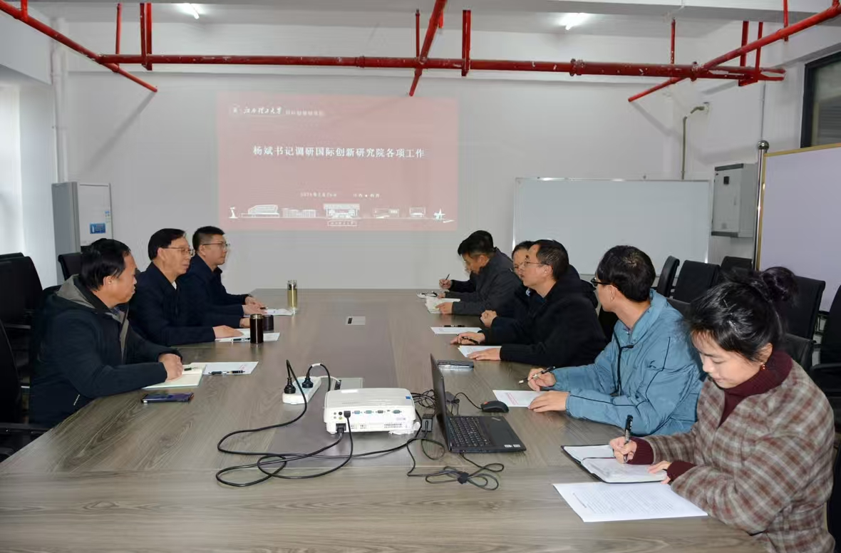 本网讯 2月26日下午,校党委书记杨斌到国际创新研究院调研指导。南昌校区管委会分管日常工作副主任兼党委副书记陈小云、校党委组织部副部长申邦坡陪同调研。国际创新研究院常务副院长帅词俊,副院长周宗彦、熊仕显、叶恒云参加调研座谈会。
