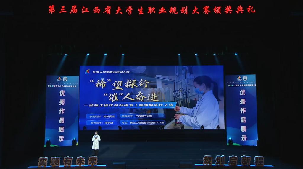 此外,稀土学院的廖梦琪作为高教组唯一代表,在大赛颁奖典礼上进行优秀作品展示,展现了裸聊直播