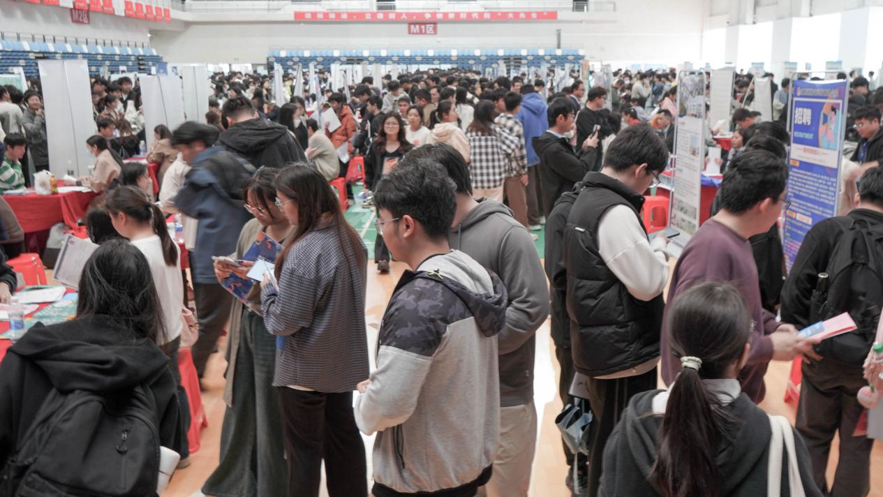 2025届毕业生宏志助航春季专场就业洽谈会在三江校区体育馆举行。本次招聘会有240余家单位参加,共5000余名学生参与,企业收到简历8000余份,达成初步意向1100余人次。