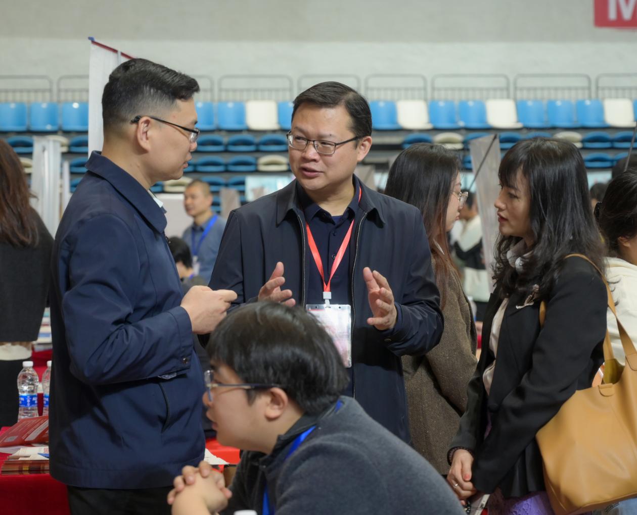 校党委常委、副校长熊志华走访各企业展位,与企业代表深入交流,了解岗位需求及市场趋势,并听取用人单位对学校人才培养的反馈。他表示,学校将持续优化就业服务平台,推动人才培养与市场需求精准对接。
