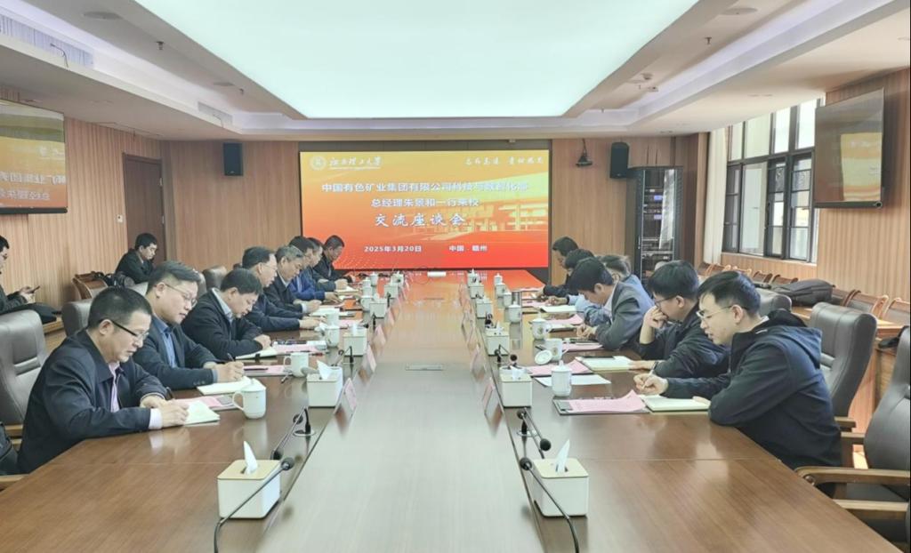 本网讯 3月20日,中国有色矿业集团有限公司科技与数智化部总经理朱景和一行来访。校党委书记杨斌出席座谈会,双方就科研项目合作、科技成果转化、平台建设及工程博士培养等事宜进行了交流。校科学技术处、材料科学与工程学院、冶金工程学院、资源与环境工程学院、应急管理与安全工程学院等相关部门和学院负责人参加会议。会议由校科学技术处处长吴彩斌主持。