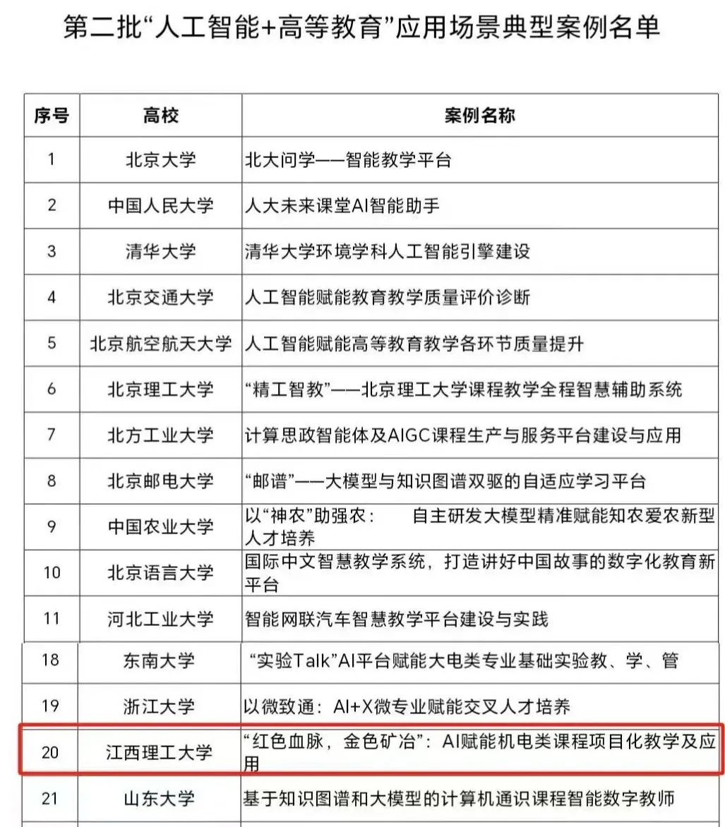 人才培养取得新提升。入选教育部第二批“人工智能+高等教育”应用场景典型案例(全省唯一、全国32所高校之一)。江理学子斩获国家级学科竞赛奖项700余项,其中,国创赛金奖1项、银奖6项(金银奖总数全省第一)。
