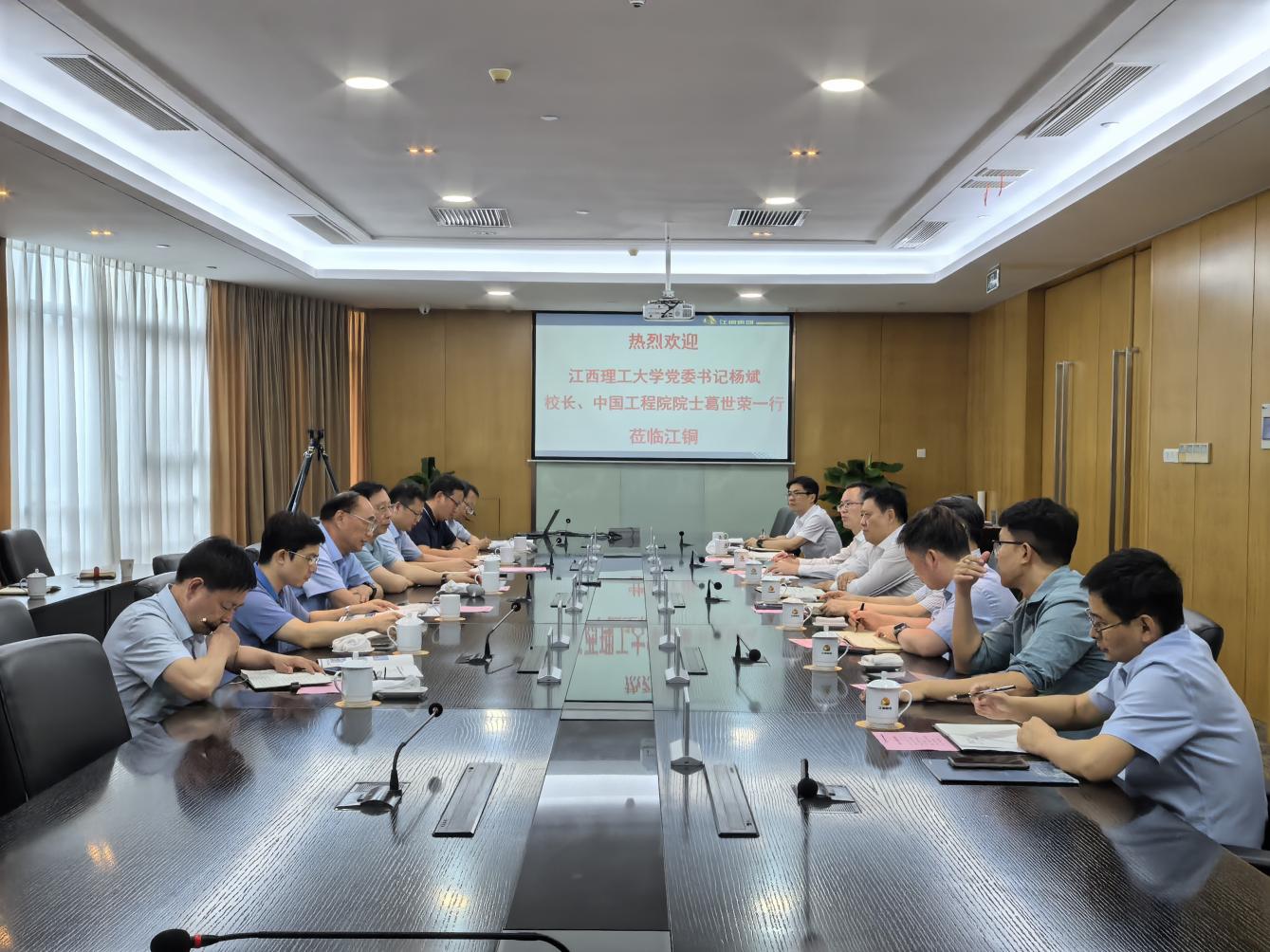 本网讯 6月23日,校党委书记杨斌及中国工程院院士、校长葛世荣带队走访江铜集团,与江铜集团党委书记、董事长郑高清,党委副书记、副董事长、总经理周少兵,党委委员、副总经理涂东阳等集团领导进行交流。校党委常委、副校长熊志华,副校长汪航及校企双方有关部门负责参加座谈。