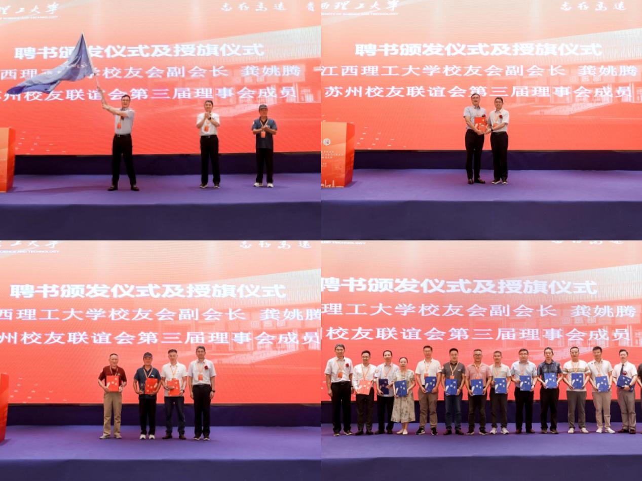 龚姚腾授旗并为新一届理事会成员颁发聘书。