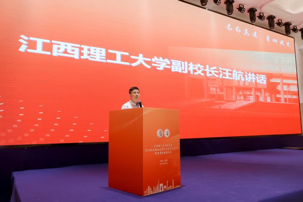 汪航代表学校讲话,并向受到表彰的校友进行颁奖。他向苏州校友联谊会第三届理事会成员的当选表示祝贺,并从综合实力提升、学科建设成效、人才培养质效、高端人才突破、科技创新硕果、社会服务贡献等方面介绍了学校近年来取得的成绩。他希望苏州校友联谊会新一届理事会要面对新形势、肩负新使命、开辟新局面、构建新格局、创造新业绩,并提出三点希望,一是深耕校友服务,打造温暖家园,精准对接需求,使苏州校友联谊会成为在苏校友最坚实的后盾、最强劲的支撑;二是创新工作机制,筑牢荣校共识,发挥理事会示范引领作用,打造校友与母校融合发展共同体,构建校友工作新生态;三是聚焦校地协同,搭建融合桥梁,主动融入“强富美高”新江苏建设,加快推动“城市+学校+校友”深度融合,实现共同发展,展现新担当新作为。诚挚邀请广大校友参加秩年返校活动,叙情谊,谋发展,话未来。