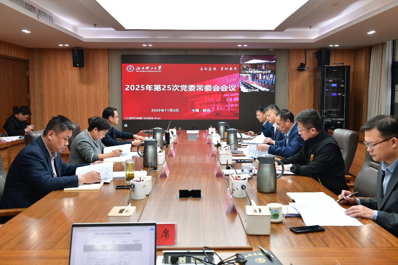 在三江校区(东园)濂溪楼1号会议室召开党委常委会会议,传达学习党的二十届四中全会精神,并对学校学习宣传贯彻全会精神进行部署。校党委书记刘祖文主持会议并讲话,全体在家校领导、党委常委参加会议。