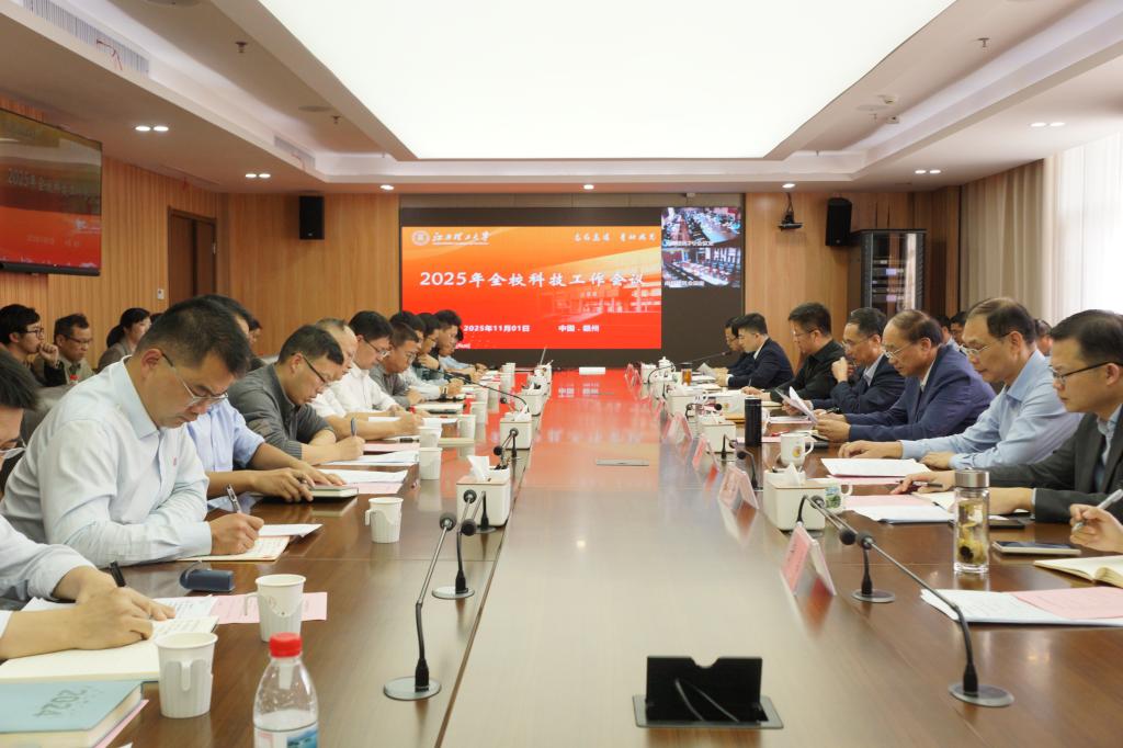 在三江校区(东园)濂溪楼三楼2号会议室召开2025年全校科技工作会议。在家校领导、赣南实验室主要负责人,各学院院长、科研副院长,实体化运行的国家级、省级平台负责人,科技处、社科处、技转中心、大学科技园等职能部门负责人参加会议。会议由副校长汪航主持。