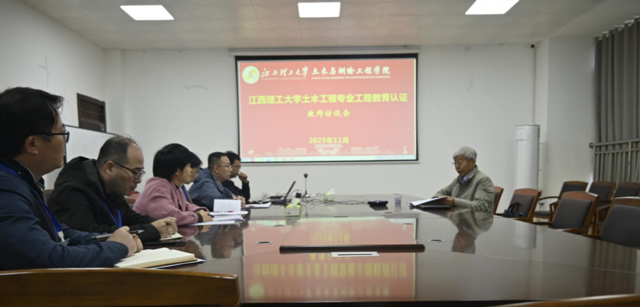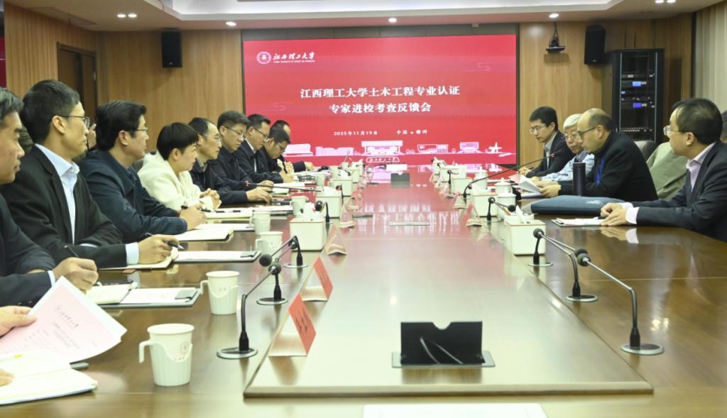 刘祖文代表学校作表态发言。他表示,专家们的建议客观全面、指向明确、务实中肯,为学校进一步强化土木工程专业建设指明了方向、明确了目标,并表示,学校将从三个方面做好持续改进工作。一是压实主体责任,切实做好专业认证“后半篇文章”。切实把整改工作与当前任务、与学校的高质量发展结合起来,以实实在在的整改成效实现“以评促建、以评促改、以评促管、以评促强”的目标要求,把土木工程专业建好建强。二是坚持立德树人,不断夯实人才培养中心地位。始终坚守“为党育人、为国育才”的初心,以立德树人为根本任务,强化人才培养中心地位与本科教育核心地位,依托赣南红色资源打造江理特色“大思政”育人格局和“三全育人”机制,落实“以本为本”“四个回归”,持续提升本科教育教学质量,营造以学生为中心的良好育人氛围。三是健全体制机制,着力推动学校事业高质量发展。学校将以土木工程专业认证为契机,对照问题举一反三查找薄弱环节,健全教育教学质量保障机制,把“评建改”成效贯穿人才培养全过程、落实到办学治校各方面,凝聚全校力量投入本科教育教学,推进治理体系和治理能力现代化,强化服务国家战略与区域发展的贡献力,向着“稀土及关键矿产领域世界一流大学”目标迈进,为教育强国和科教强省战略贡献江理力量。