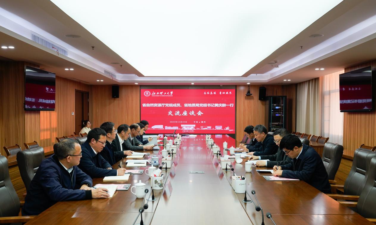 本网讯 12月23日,省自然资源厅党组成员、省地质局党组书记黄庆龄一行来访裸聊直播 ,校党委书记刘祖文,中国工程院院士、校长葛世荣出席,双方就深化局校合作进行了深入交流。省地质局党组成员、副局长吴俊华,校领导徐志峰、熊志华、汪航参加座谈。
