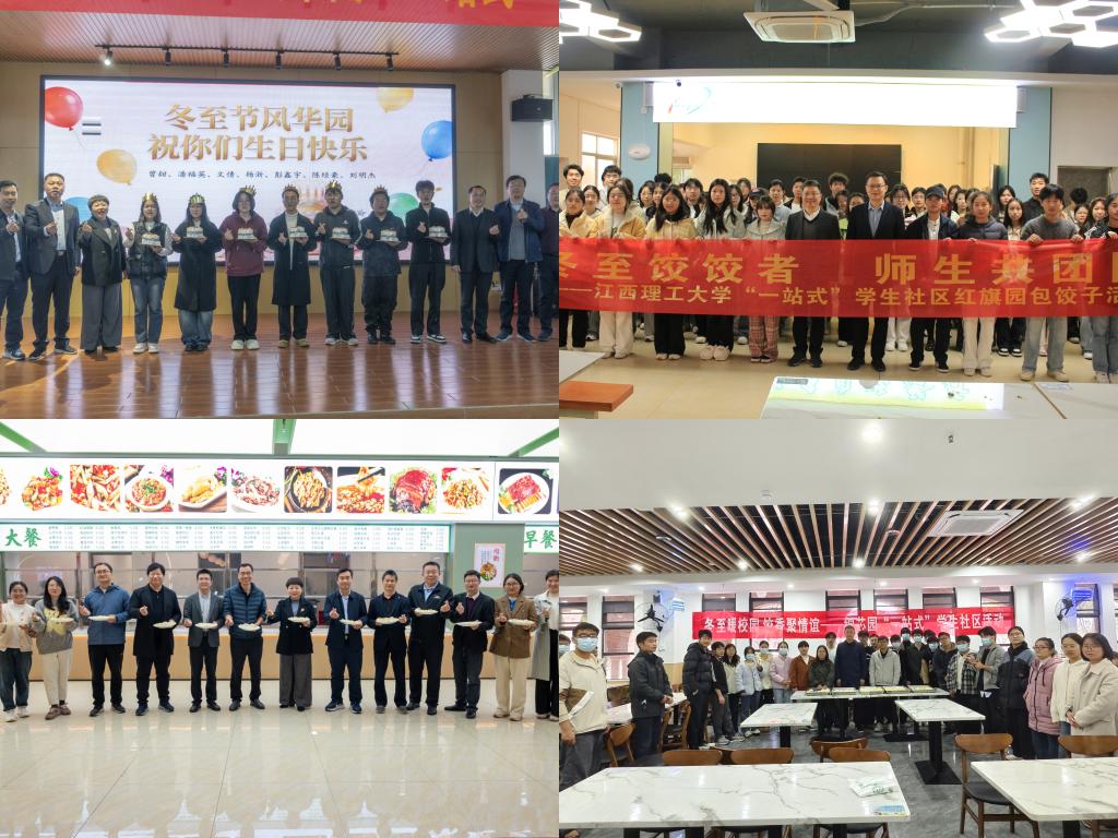 在赣州、南昌、鹰潭、信丰四地七个学生社区,开展以“情暖冬至 饺香社区”为主题的冬至包饺子文化体验活动。中国工程院院士朱荣校友,校领导刘祖文、徐志峰、熊志华、刘飞、宁洁、陈斌,校党委常委、统战部长汪锋锁与师生及家长代表欢聚一堂,共叙情谊、同包饺子、共享饺香。