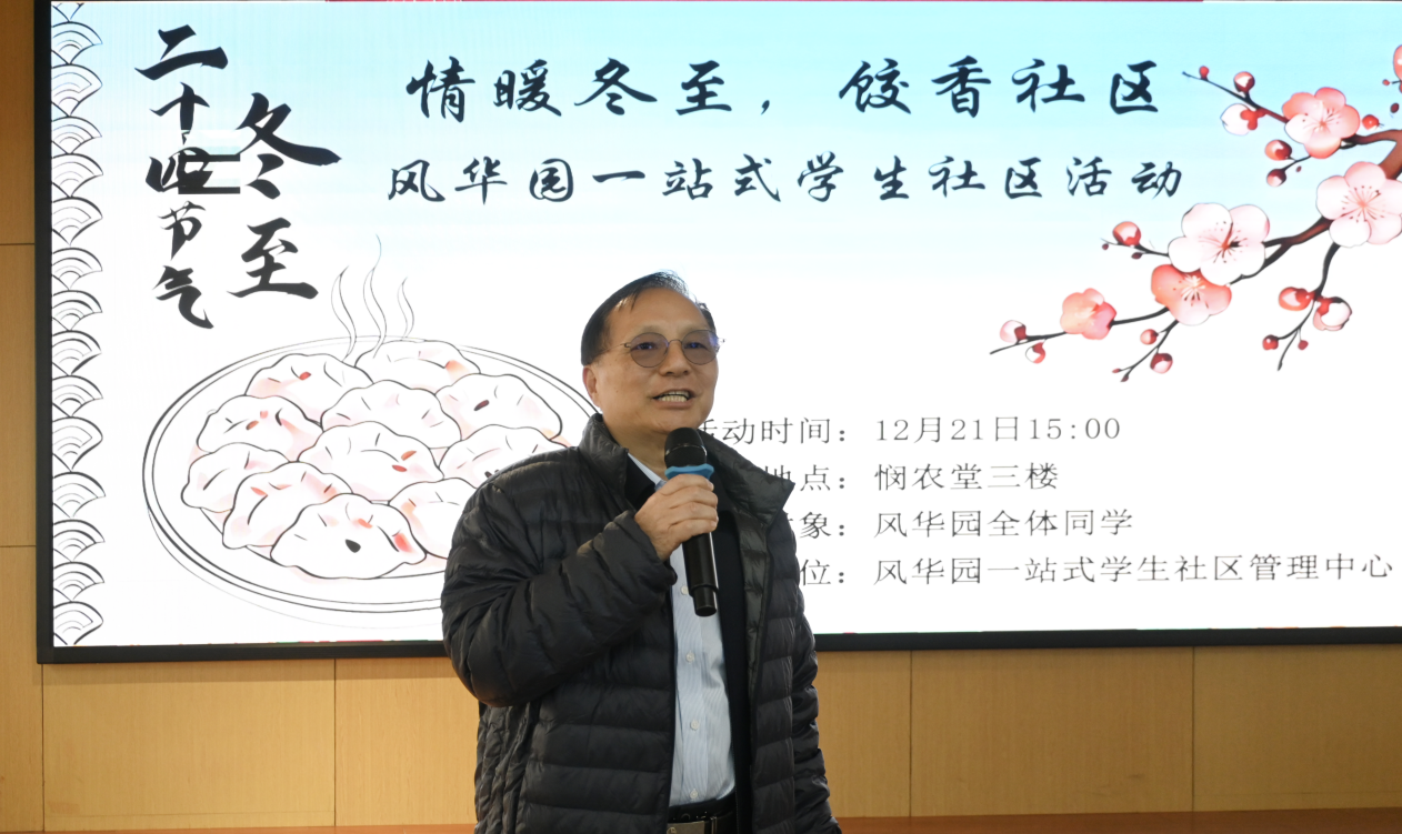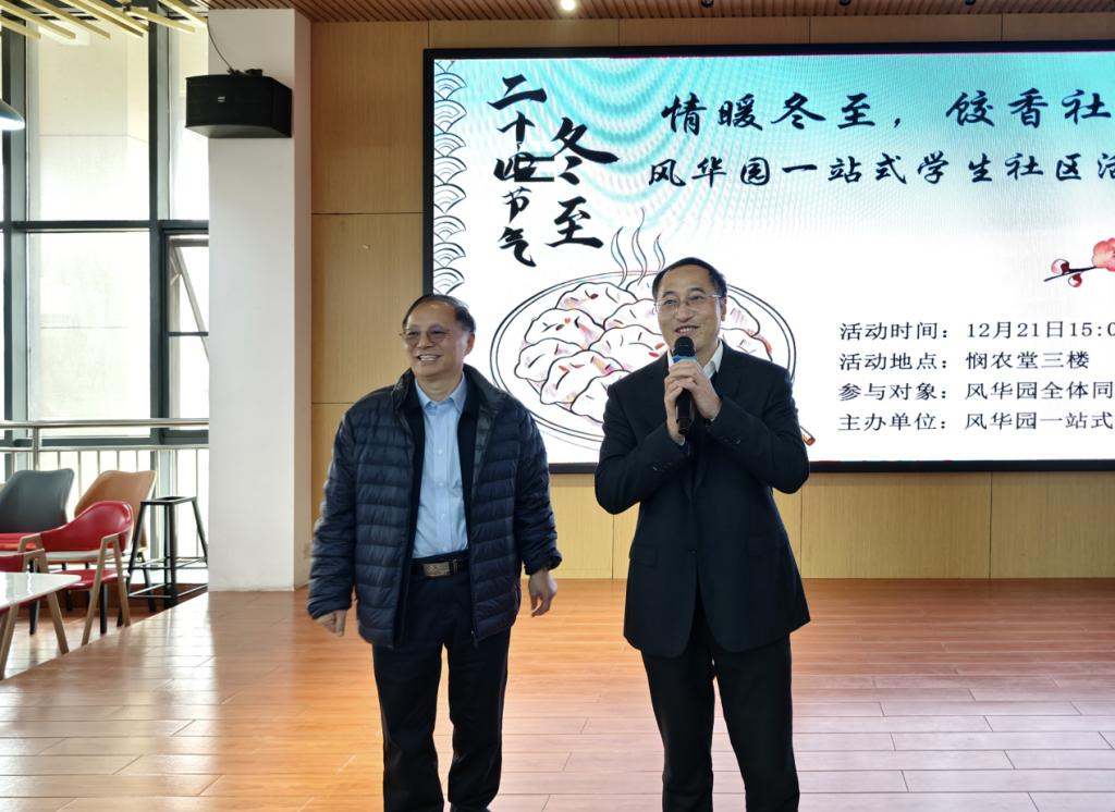 校友朱荣也来到了冬至包饺子活动现场,给同学们送上“成功人生”大餐,与学子们分享了自己的求学经历,他表示:“看到母校日新月异的发展,特别是'一站式'学生社区的建设成效,深感欣慰。希望同学们珍惜校园时光,既要专攻术业,也要涵养品德,传承好中华优秀传统文化,成为担当民族复兴大任的时代新人。”