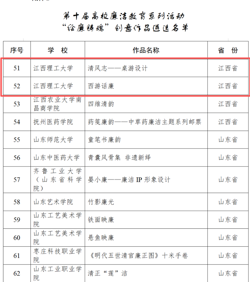 共有3件作品成功入选,入选数量位列江西省高校第一,充分展现了学校在廉洁文化建设和思想政治教育工作中的扎实成效与突出实力。