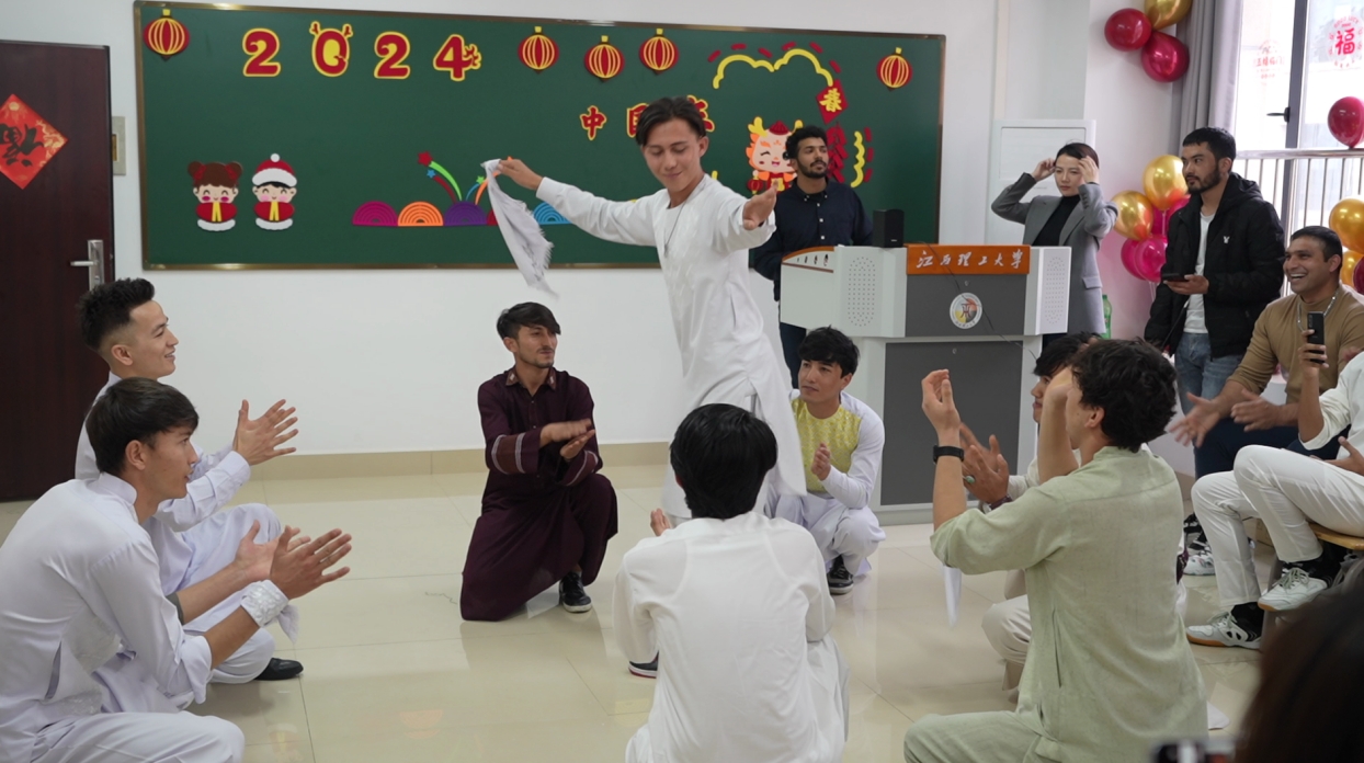 活动中,伴随各色民族音乐,来自不同国家的国际生也为大家带来具有民族特色的舞蹈与歌唱表演,新年氛围顿时拉满。扫尘、贴春联、写福字……在学习系列中国春节习俗的过程中,深处异国他乡的国际学生们感受到了源远流长的中华传统文化和浓浓的中国“年味儿”。
