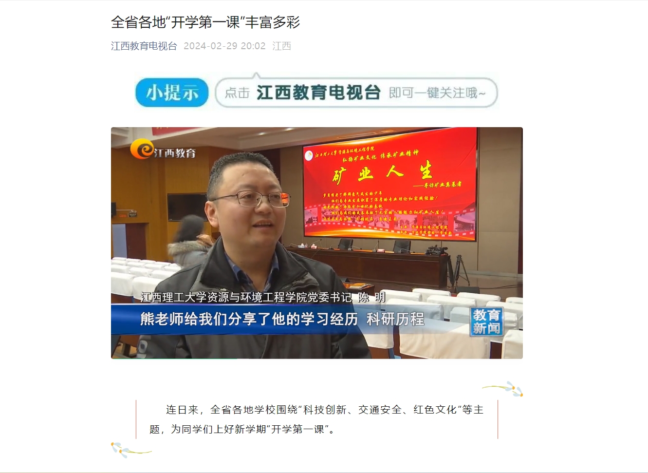 连日来,全省各地学校围绕“科技创新、交通安全、红色文化”等主题,为同学们上好新学期“开学第一课”。