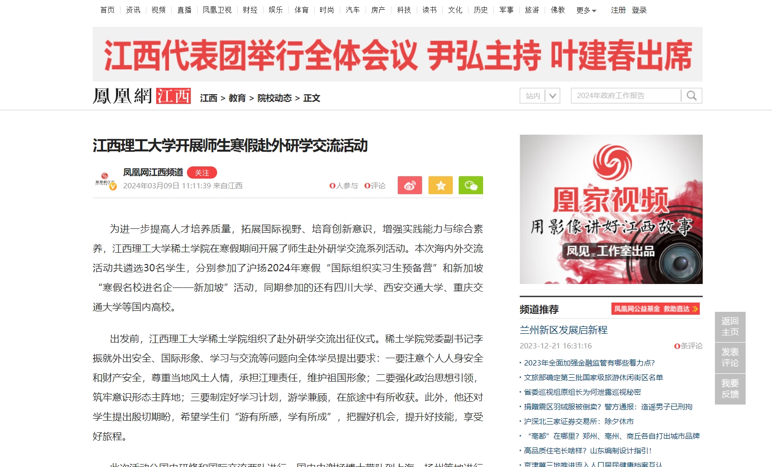 稀土学院在寒假期间开展了师生赴外研学交流系列活动。本次海内外交流活动共遴选30名学生,分别参加了沪扬2024年寒假“国际组织实习生预备营”和新加坡“寒假名校进名企——新加坡”活动,同期参加的还有四川大学、西安交通大学、重庆交通大学等国内高校。
