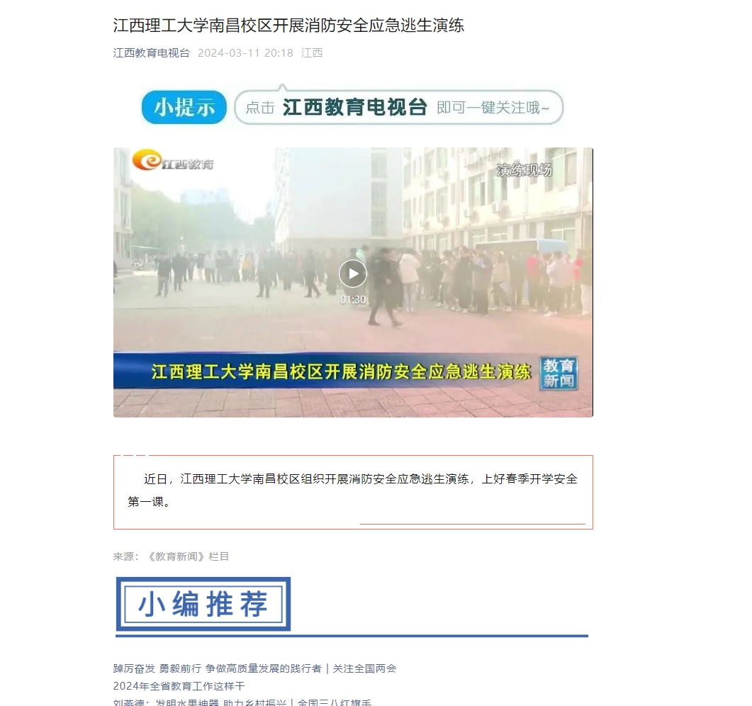 近日,裸聊直播 南昌校区组织开展消防安全应急逃生演练,上好春季开学安全第一课。