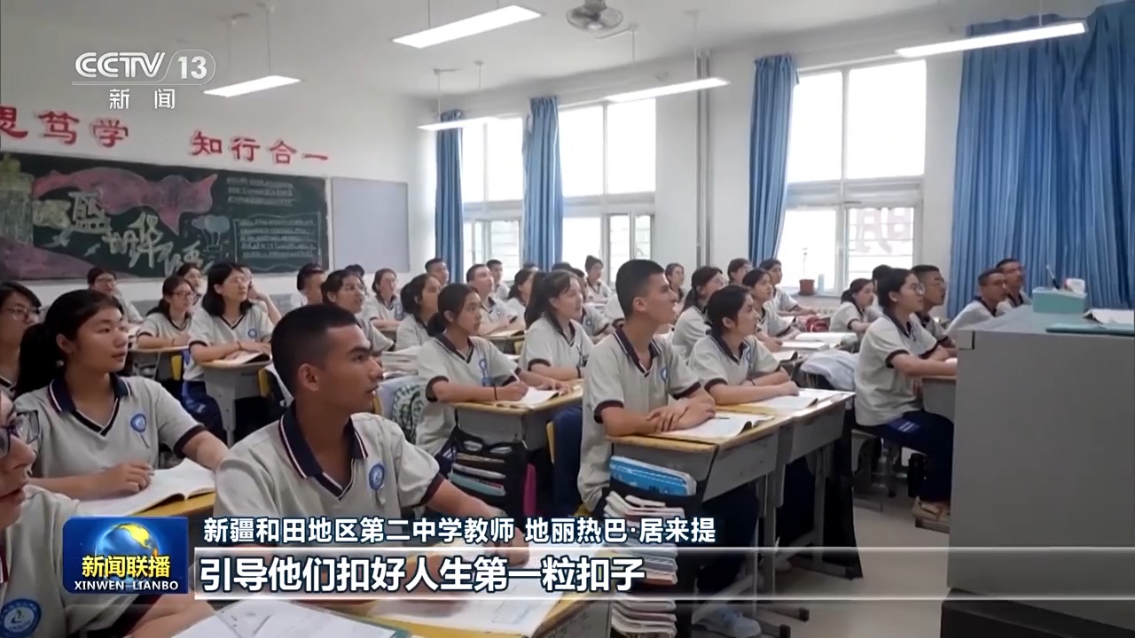 新疆和田地区第二中学教师 地丽热巴·居来提:总书记的重要指示让我备受鼓舞,我要努力成为一名政治强、情怀深、思维新、视野广、自律严、人格正的思政课教师,做到浇花浇根,育人育心,引导他们扣好人生第一粒扣子。