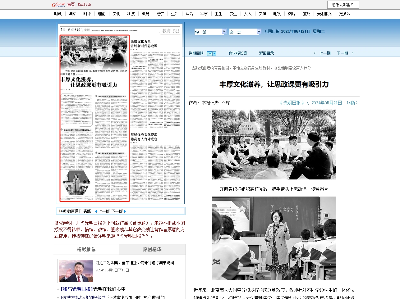 《光明日报》:丰厚文化滋养,让思政课更有吸引力