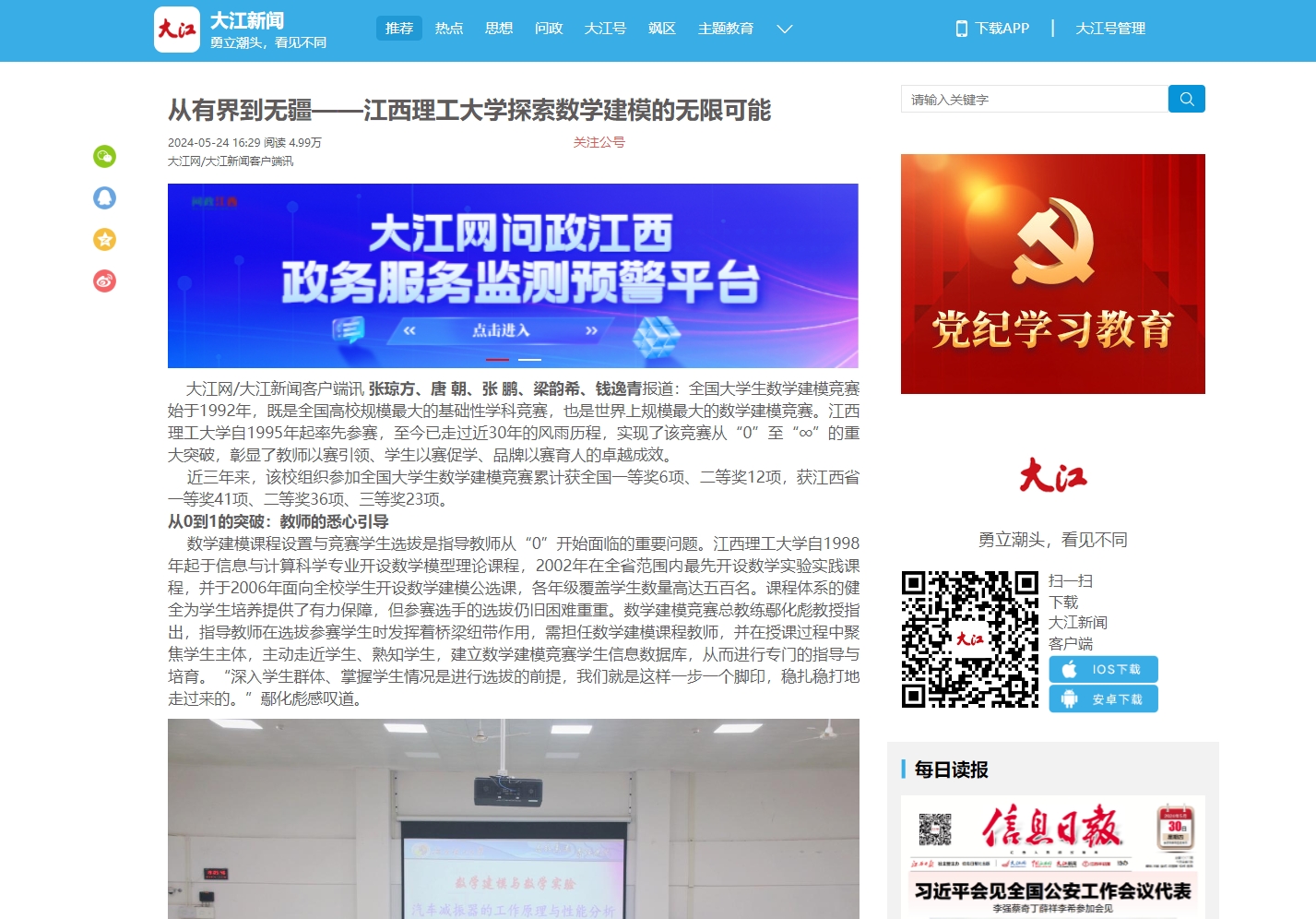 以稳居江西省前列的成绩在全国大学生数学建模竞赛空白史上翻开了崭新的一页。