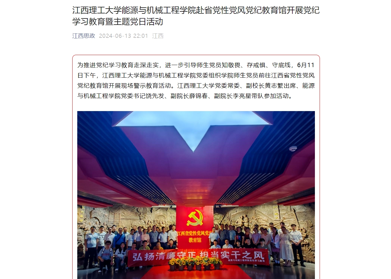 能源与机械工程学院党委组织学院师生党员前往江西省党性党风党纪教育馆开展现场警示教育活动。裸聊直播