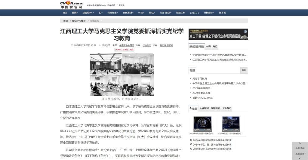 该学院概论党支部党员通过制作故事情景剧,挖掘江西红色资源,讲好革命战争年代党员严明党规党纪的故事;原理党支部结合学校中心工作和实际,将党纪学习教育与落实思政教育重大决策部署紧密结合,确保开展党纪学习教育与推动学校事业发展各项工作同频共振;纲要党支部将党规党纪与实际教学工作相结合,将党纪学习教育融入《中国近现代史纲要》课程中的“延安整风运动”和“中央苏区廉政建设”等内容中,带领学生学习朱德的《望升官发财者勿来》等廉政主题的红色家书,推动党纪学习教育走深走实;研究生党支部将党纪学习教育融入支部“红领金”党建品牌建设,支部党员先后前往兴国官田中央兵工厂、瑞金红色革命教育基地、学校苏区精神展馆等场馆,开展党纪学习教育实践活动。