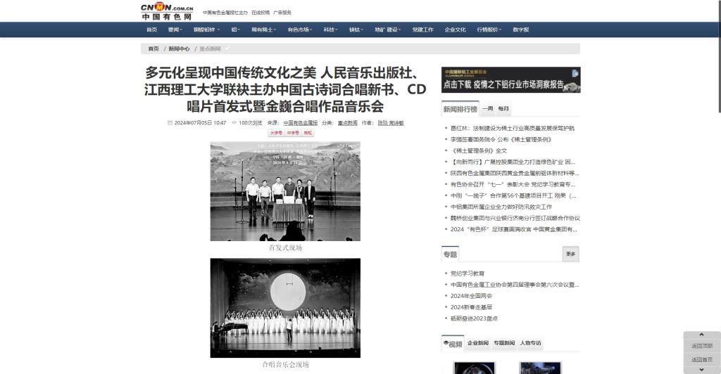6月22日、23日晚,《中国古诗词合唱45首》(以下简称中国古诗词合唱新书)、CD唱片首发式暨金巍合唱作品音乐会在江西赣州成功举办。首发式由人民音乐出版社、裸聊直播