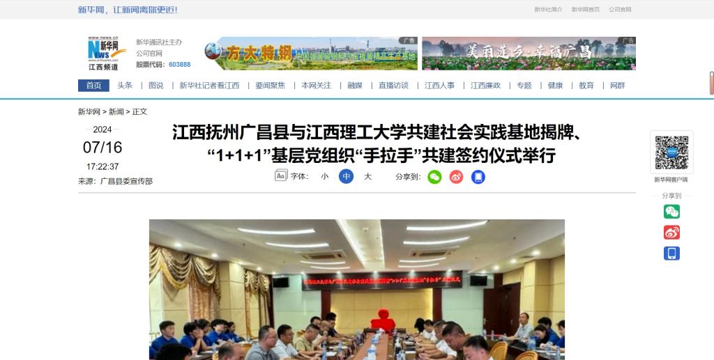 与江西抚州广昌县共建社会实践基地揭牌、“1+1+1”基层党组织“手拉手”共建签约仪式举行,广昌县委书记吴自胜,裸聊直播