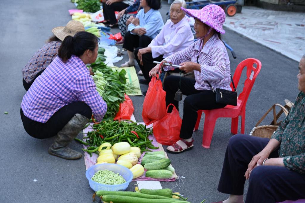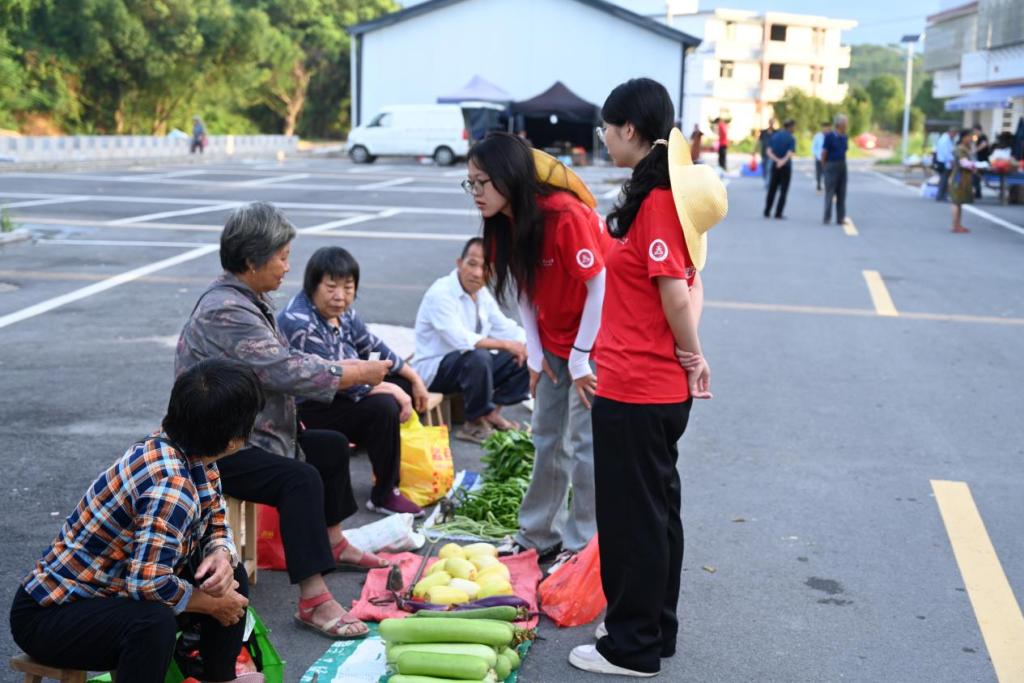 “昨天还是平常冷清的街道,今早已被小商小贩的摊位占满了。各种蔬菜水果、各种小吃零食……吸引了很多小朋友来,一下子感觉整个村庄都热闹了起来。”实践队员官利爽表示。