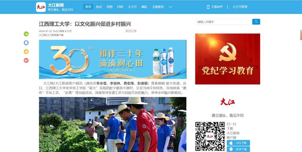 化学化工学院“星火”实践团赴宁都县小源村,立足当地文化特色,实地体验“夏布”文化工艺、“赶集”等民俗活动,深度探寻非遗工艺与民俗文化的魅力,思考乡村振兴新路径。